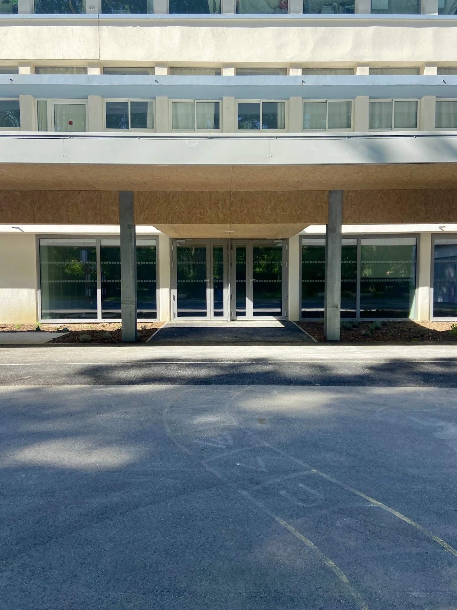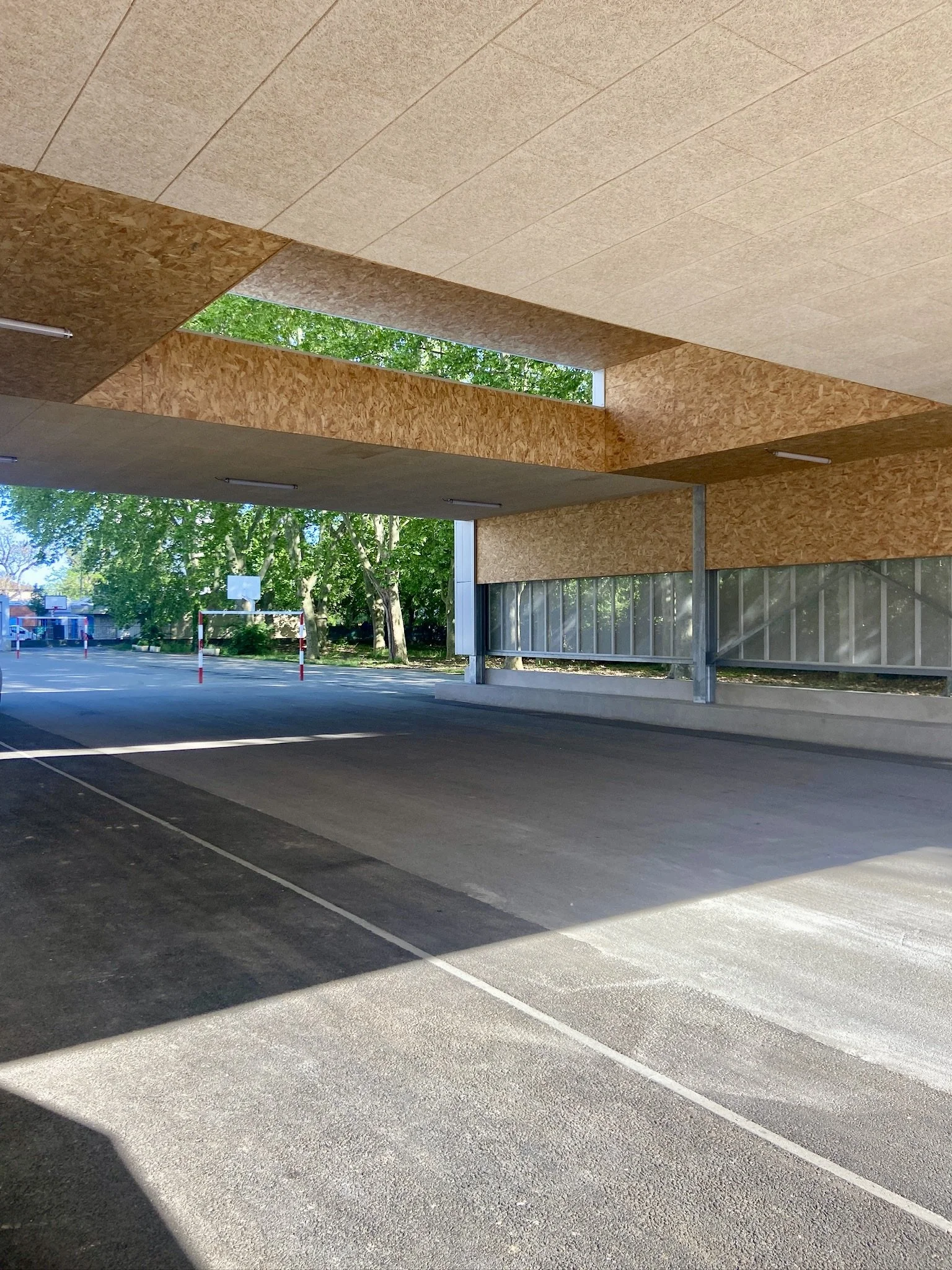 Programme : Restructuration complète du bâtiment + Création d’un préau et sanitaires extérieurs.
